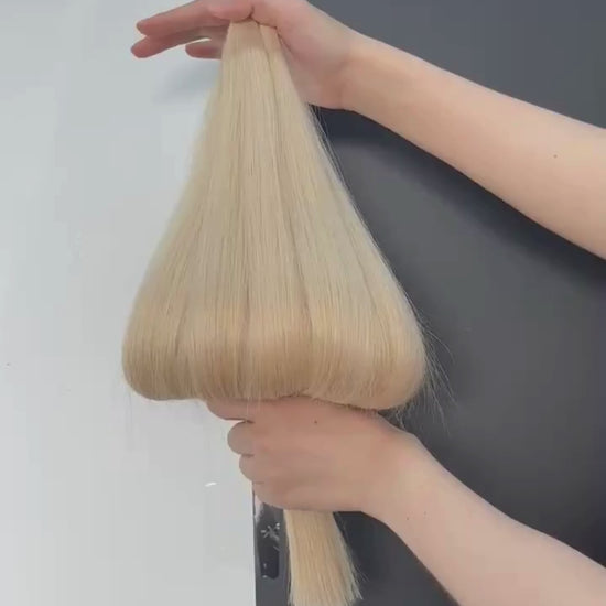 Flat Tip Keratin Extensions i farven Luxury 613N er en lys, cremet blond nuance med en blød gylden undertone – perfekt til dem, der ønsker et friskt og naturligt resultat uden kolde eller grå elementer. Denne nuance giver et klassisk blond look, der passer smukt til lyst eller afbleget hår.