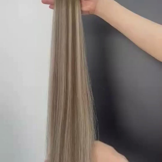 Ge ditt hår en modern och naturligt kall blond look med våra Genius weft Extensions i nyansen LA Kall Blond Balayage.